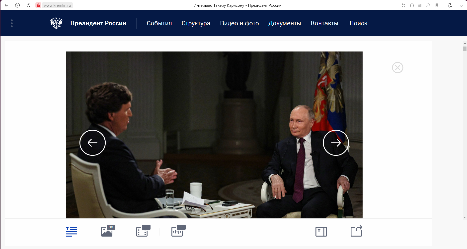 Владимир Путин ответил на вопросы Такера Карлсона – журналиста, основателя видеоплатформы Tucker Carlson Network.