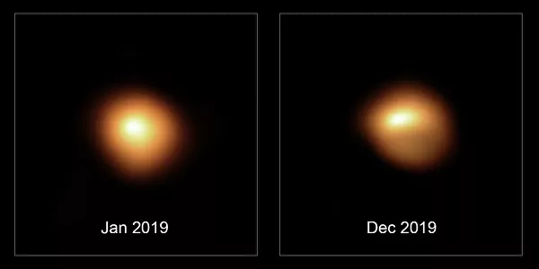 Эта же группа наблюдателей исследовала звезду с тем же приемником SPHERE в январе 2019 года, еще до того, как она начала тускнеть, что позволило провести сравнение двух изображений Бетельгейзе до и после изменения ее блеска. Изображения, полученные в оптических лучах, отчетливо демонстрируют изменения как блеска, так и видимой формы звезды.