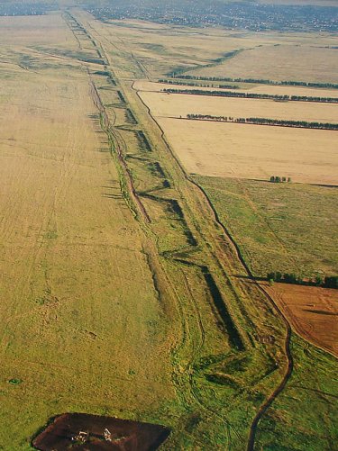 На границе Красноярского и Кинельского районов Самарской области хорошо видны остатки грандиозного сооружения, в исторической науке известного, как «Заволжский исторический вал», и протянувшегося более чем на 2500 километров...