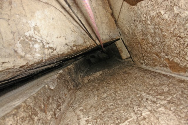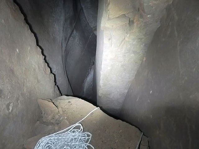 По словам исследователей, найденная пещера (шахта) не имеет аналогов среди подобного рода комплексов — судя по всему, она рукотворна. Выходящая на вершину горы шахта — это две цельные каменные плиты, поставленные параллельно, с боковинами, заложенными аккуратными небольшими камнями. Затем идут еще несколько шахт, ведущие в огромный 36-метровый подземный зал. Одна из его стен и свод тщательно отшлифованы.