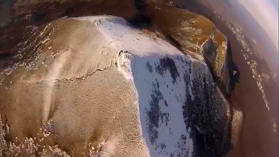 По словам исследователей, найденная пещера (шахта) не имеет аналогов среди подобного рода комплексов — судя по всему, она рукотворна. Выходящая на вершину горы шахта — это две цельные каменные плиты, поставленные параллельно, с боковинами, заложенными аккуратными небольшими камнями. Затем идут еще несколько шахт, ведущие в огромный 36-метровый подземный зал. Одна из его стен и свод тщательно отшлифованы.